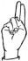 На ћирилици написано КОНСТАНТИН ОБУЋИНСКИ састоји се из 19 слова [?]. Исписано ћириличном једноручном азбуком за глувонеме: